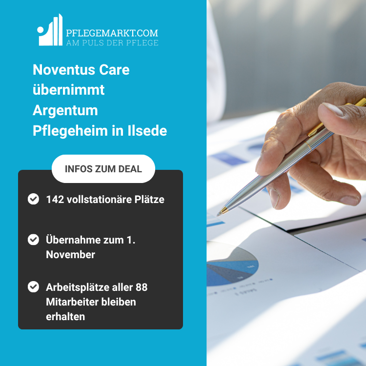 Die Noventus Care übernimmt das Pflegeheim am Kugelwasserturm und ist neuer Eigentümer des bisher zur Argentum Pflegewohnstift GmbH gehörenden Pflegezentrums. Dies geht aus einer Pressemitteilung der Argentum Gruppe vom 22. Oktober 2025 hervor.