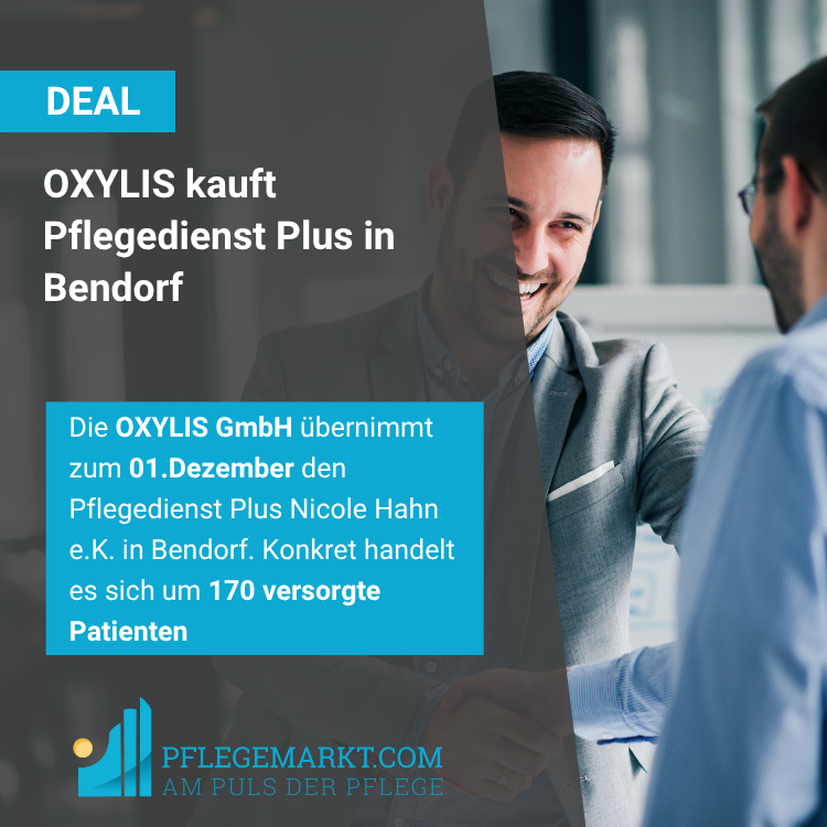 Die Oxylis GmbH, Träger ambulanter Pflegedienste mit Sitz in Unterschleißheim bei München, übernimmt im Rahmen eines Asset-Deals den ambulanten Pflegedienst Plus Nicole Hahn e.K. in Bendorf bei Koblenz. Somit setzt das Unternehmen seine Wachstumsstrategie fort. Zum 1. Dezember 2025 verstärkt OXYLIS somit die Marktpräsenz in Rheinland-Pfalz und untermauert seine strategische Buy-and-Build-Ausrichtung.