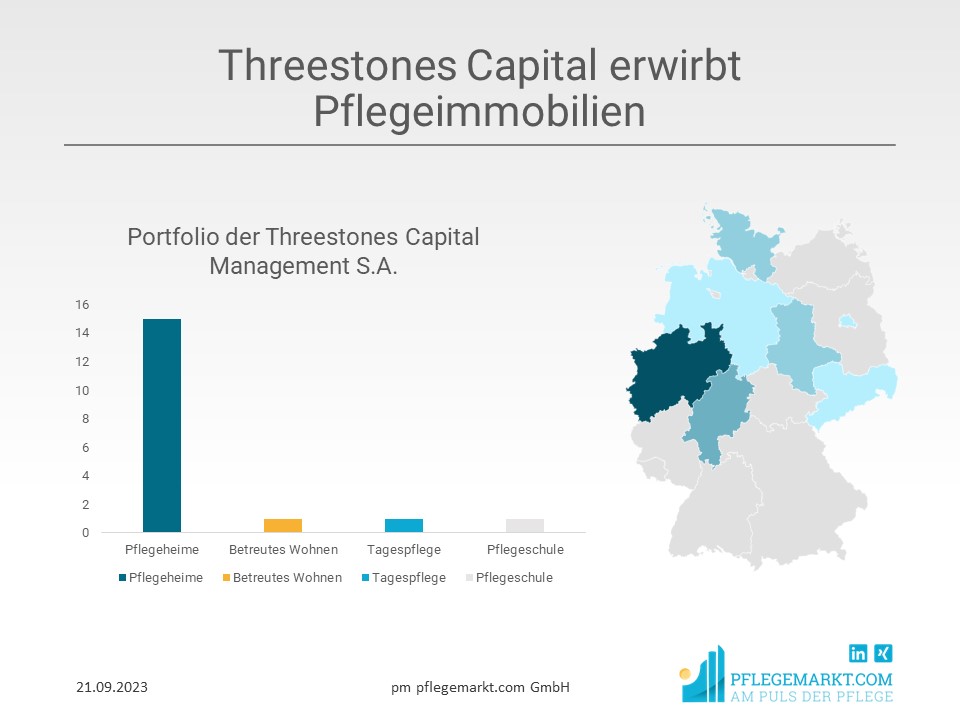 Die Threestones Capital Management SA hat ihren Hauptsitz in Luxemburg. Insgesamt hält die Gesellschaft in Deutschland 15 Pflegeheime, mit insgesamt 1.542 Plätzen.