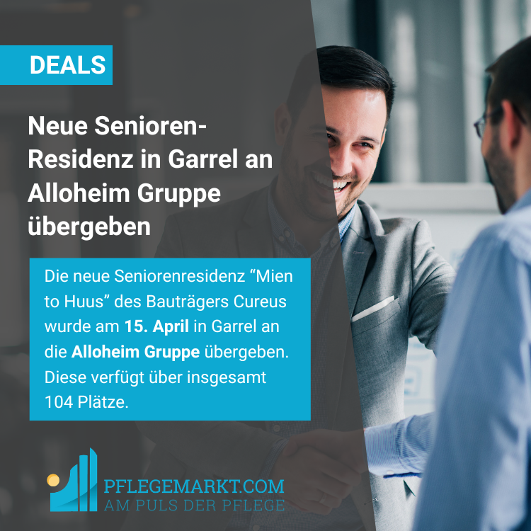 Die neue CMS-Seniorenresidenz “Mien to Huus” wurde am 15. April in Garrel von Bauträger Cureus an die Alloheim Gruppe übergeben. Die offizielle Einweihung ist für den Frühsommer angedacht. Dies geht aus einer Pressemitteilung der Alloheim Gruppe vom 15. April hervor.